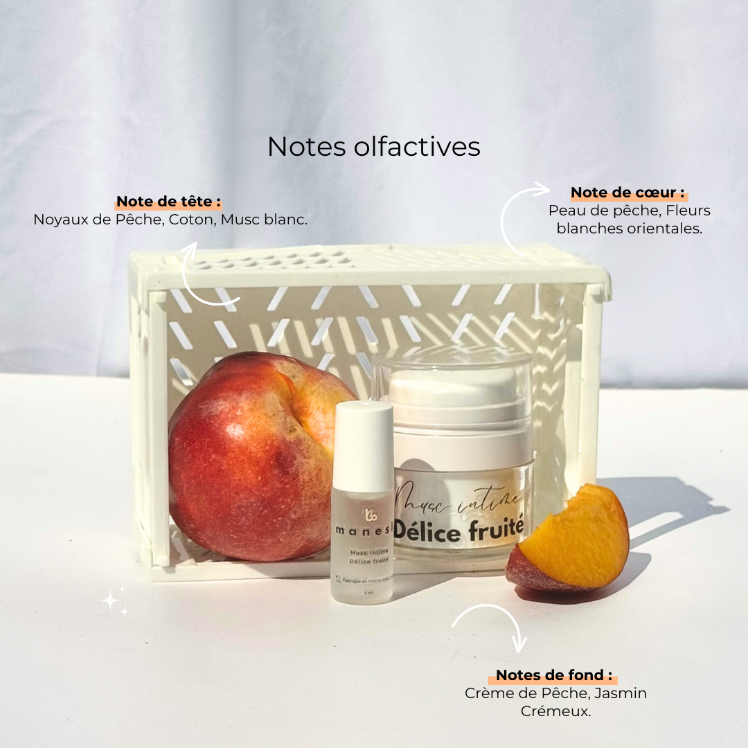L'arôme de la pêche, avec ses notes à la fois fruitées et sucrées, est une invitation olfactive idéale pour la femme recherchant une expérience estivale. Celle qui est attirée par cette senteur aime les fragrances légères et vivifiantes, rappelant des journées ensoleillées. Associée au musc Tahara, la pêche devient captivante et délicate, séduisant les femmes en quête d'une fragrance subtile et sophistiquée. Opter pour le musc intime à la pêche, c'est choisir une essence qui s'adresse à la femme moderne, élégante et spontanée, exprimant une préférence pour les notes fruitées et enjouées.