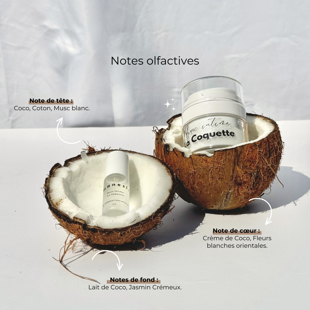 L'odeur de noix de coco, avec ses notes douces, sucrées et exotiques, convient particulièrement à la femme qui recherche une expérience olfactive à la fois chaleureuse et tropicale. Celle qui apprécie cette senteur recherche souvent des fragrances gourmandes et réconfortantes, évoquant des souvenirs de vacances sous les palmiers. Associée au musc Tahara, la noix de coco prend une dimension sensuelle, attirant les femmes en quête d'une fragrance sophistiquée et envoûtante. Opter pour le musc intime à la noix de coco, c'est choisir une essence qui s'adresse à la femme moderne, élégante et raffinée, tout en exprimant un penchant pour les notes exotiques et captivantes.